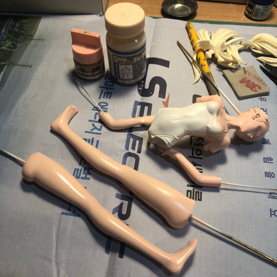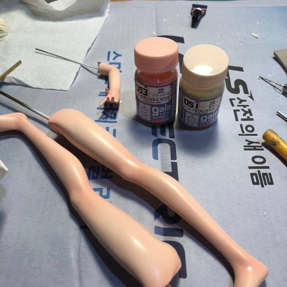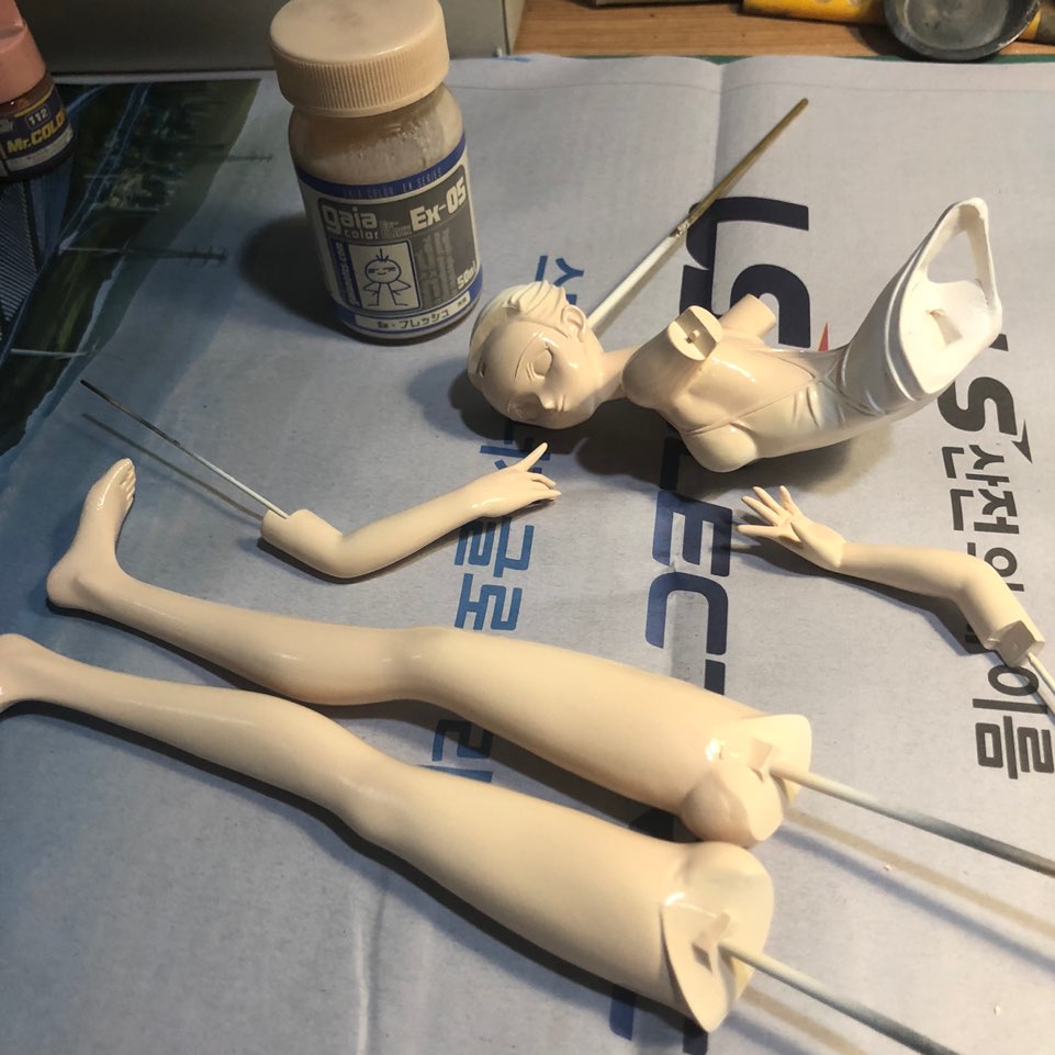 가이아노츠 EX-05에 GSI 락카 112번을 섞어서 더 진한 살색을 만들어서 에어브러싱했습니다.