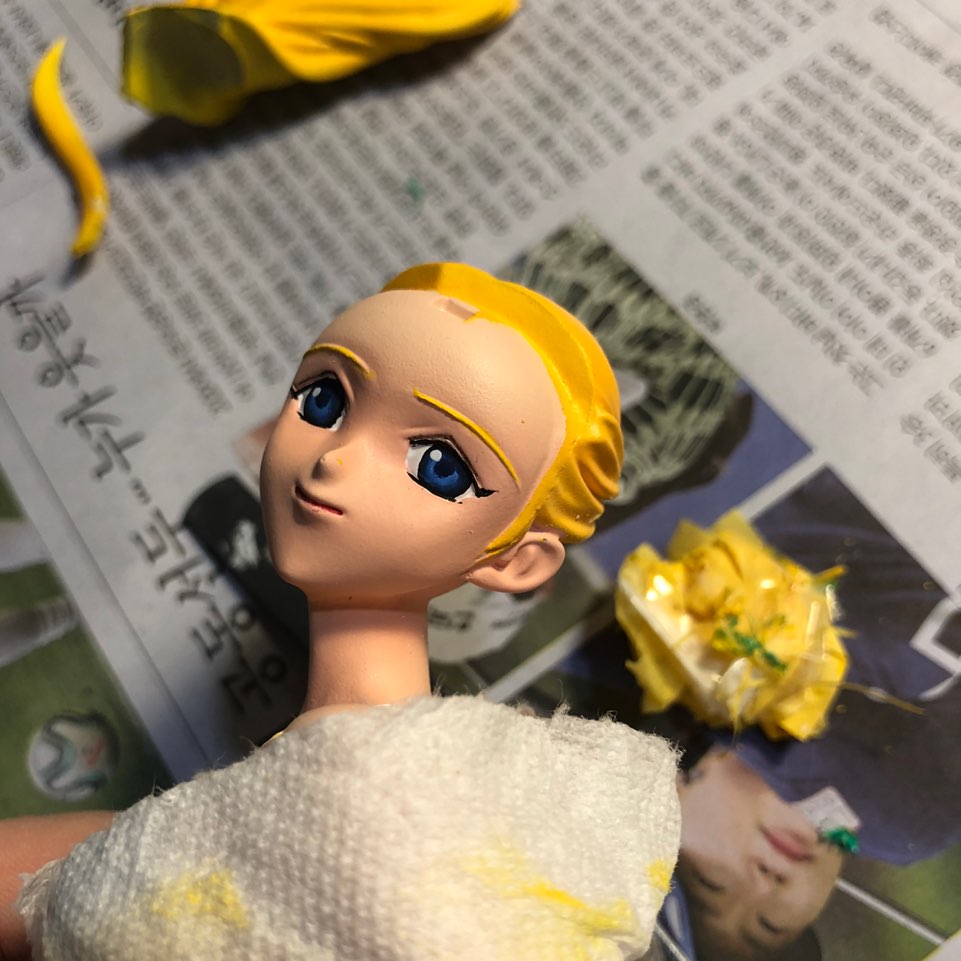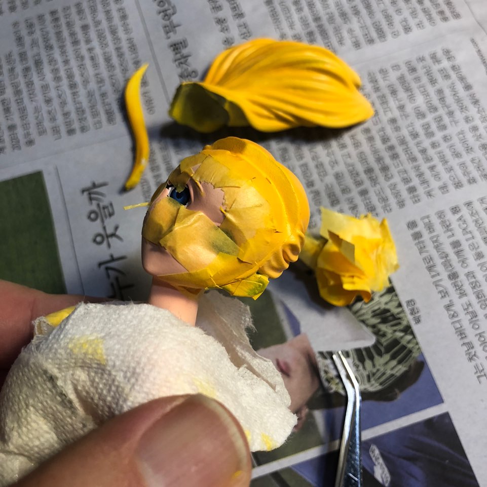 머리카락을 색칠하기 위해 꼼꼼하게 마스킹을 했습니다.