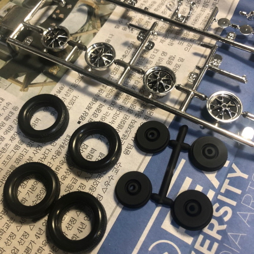 레벨 자동차 프라모델을 만들때 가장 불만이 일체형 와이퍼와 밋밋한 타이어였는데