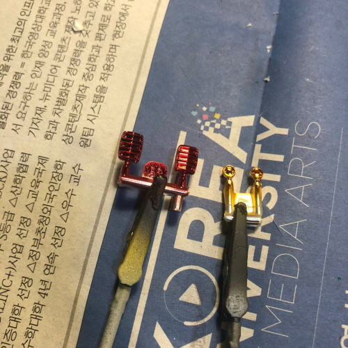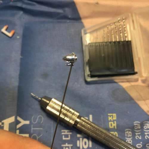 0.5㎜ 핀바이스로 구멍을 뚫고 황동심을 박아서 단단히 접착했습니다.