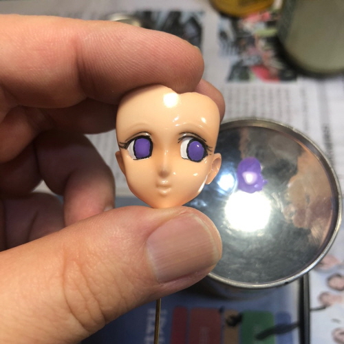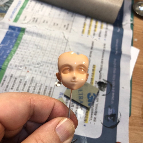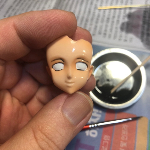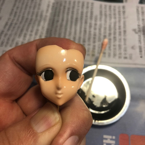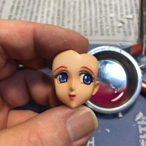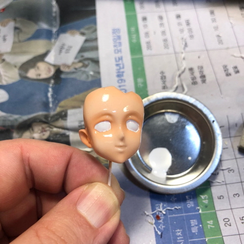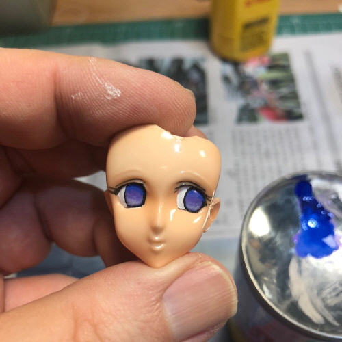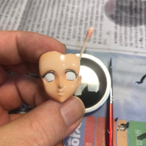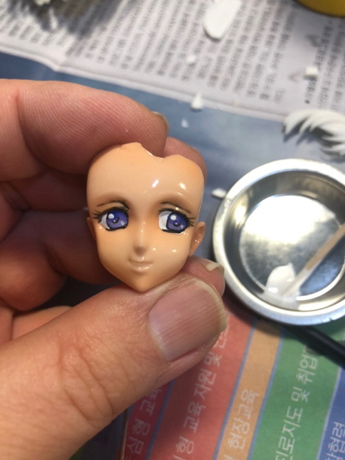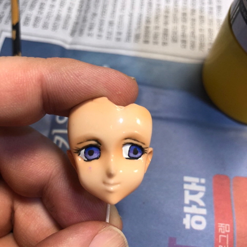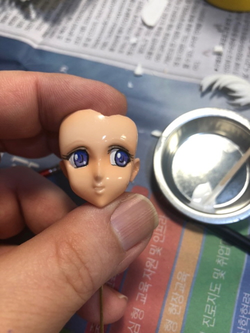 눈썹을 그리고 무광 클리어로 코팅한 다음, 눈과 입술을 클리어로 그려서 광택을 내주었습니다.