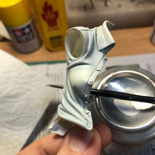 에나멜로 기본색보다 조금 더 진한 회색을 조색해서 붓으로 재봉선을 따라 그렸습니다.