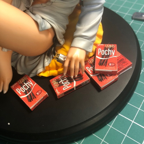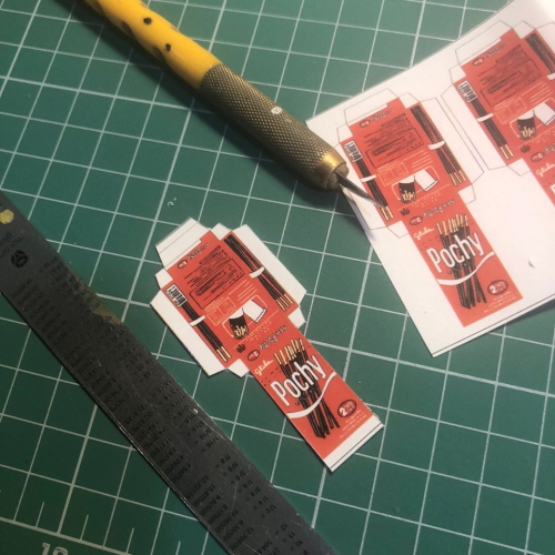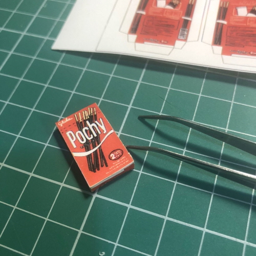 포키 봉지는 목공 접착제로 붙였지만 포키 상자들은 그냥 올려만 두었습니다.