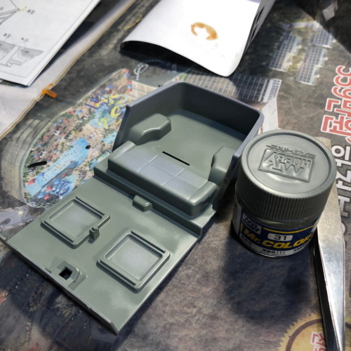 바닥을 마스킹하고 GSI 락카 13번(뉴트럴 그레이)을 에어브러싱 했고