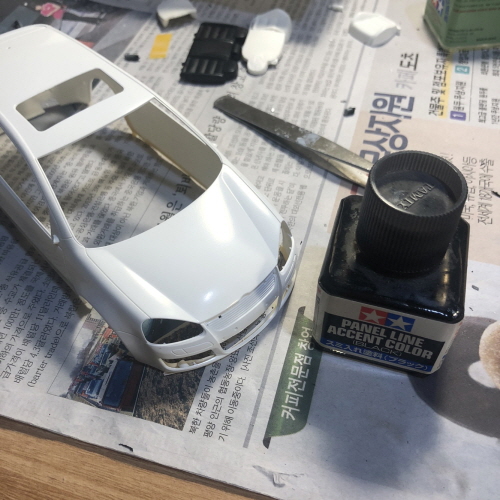 이제 타미야의 패널라인 컬러로 먹선을 넣을겁니다.