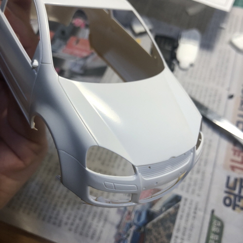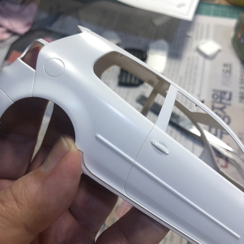 맨처음 사포질로 다듬기를 할때 패널라인을 조금씩 더 깊게 파내서 먹선이 잘 들어가도록 준비를 했었습니다.