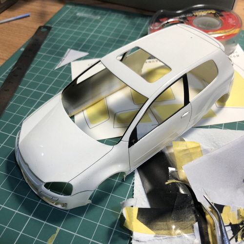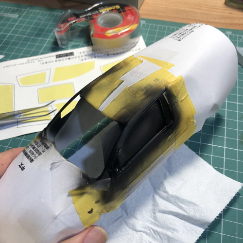 넓은 면적에는 종이도 활용해서 마스킹 테이프를 절약했습니다.