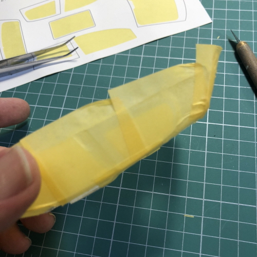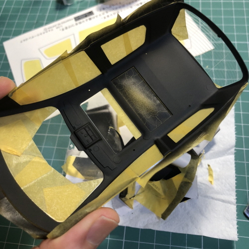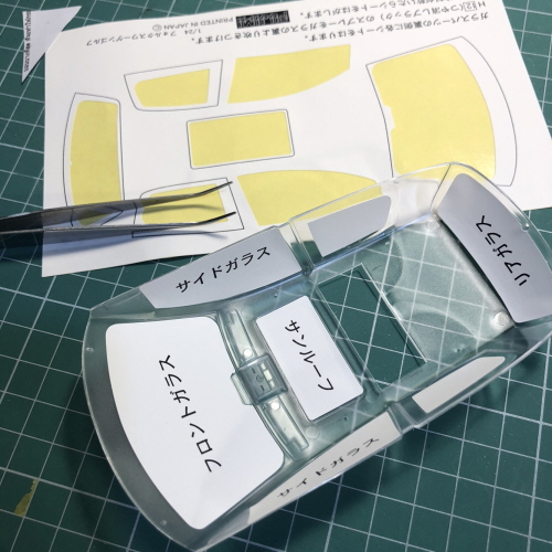 자동차 프라모델의 투명 부품은 대개 안쪽에 색칠을 하지만 바깥쪽도 마스킹을 해야합니다.