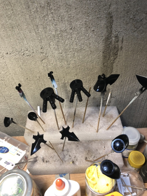 금색 색칠을 위해서 GSI 락카 2번 유광검정으로 밑칠을 했습니다.