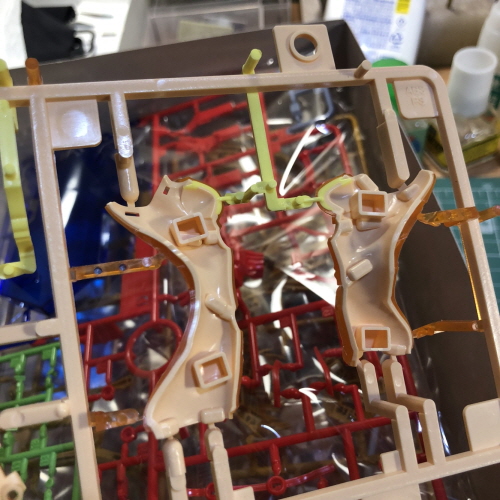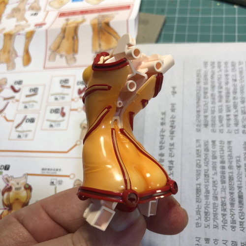 몸통부분의 홈은 노란색이어서 스티커가 있지만 골반 부분의 테두리에는 아무 것도 없습니다.