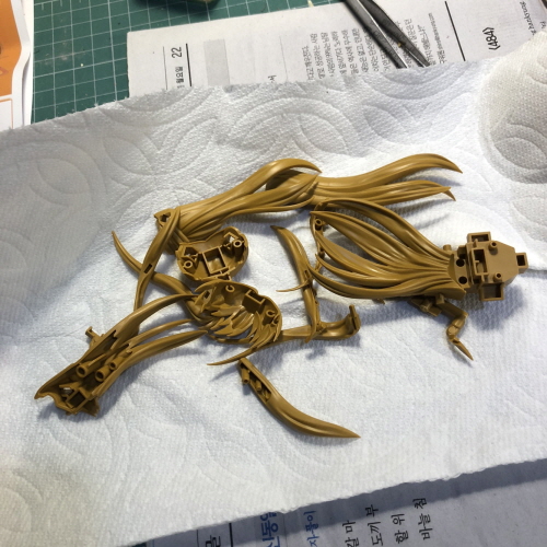 이 사진 이후 마이크(로 보이는 부품)는 아크릴로 색칠하고, 무릎과 손목에도 약간 디테일을 넣었습니다.