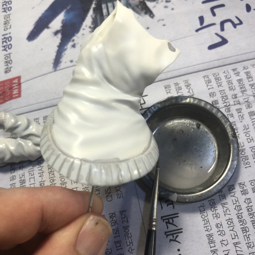 흰색 서페이서를 먼저 칠하고 그 위에 GSI락카 69번 오프화이트를 기본색으로 색칠했습니다.