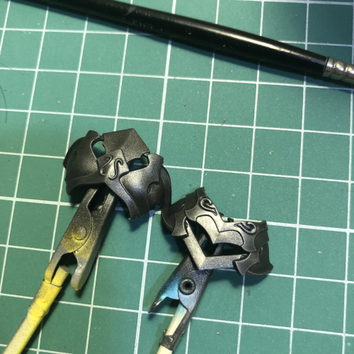 아크릴이 에나멜보다 밑색을 잘 덮어서 이럴땐 좀 더 낫긴 하군요.