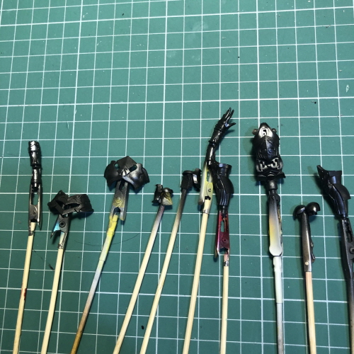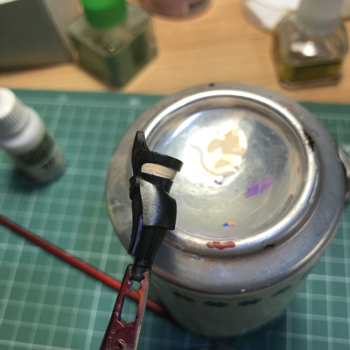각 부품별로 조립하고 악어클립에 물려서 에어브러시로 색칠했습니다.