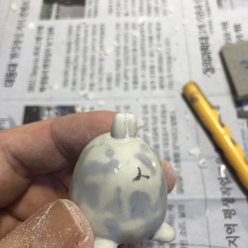 계란모양으로 동그랗게 빚고 눈 위치를 대충 잡아봤습니다.