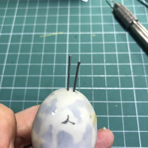 귀를 붙이기 위해서 프라모델 런너를 녹여 늘린 것으로 뼈대를 심었습니다.