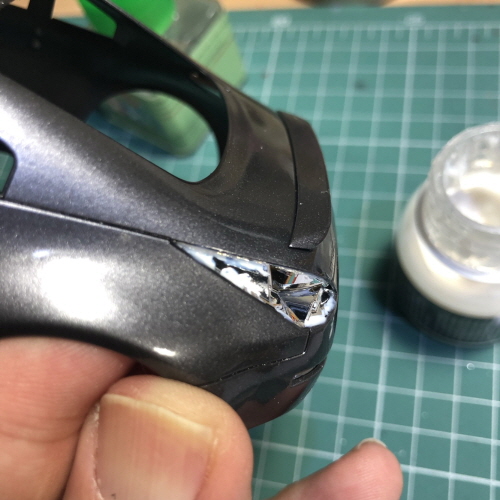 라이트 부분을 조립할땐 투명부품용 접착제를 자주 사용합니다.