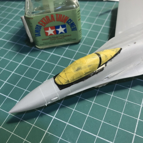 콕핏 주변을 타미야 에나멜 XF-1 무광검정으로 색칠했습니다.