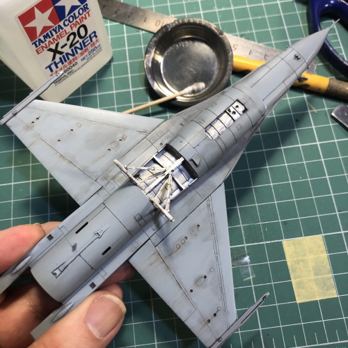 랜딩기어와 수납부 안쪽을 GSI 락카 1번 흰색으로 에어브러싱 했습니다.