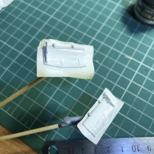 타미야 에나멜신너를 면봉에 적셔서 세로방향으로 닦아냈습니다.