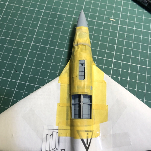 랜딩기어 커버는 바깥쪽을 먼저 색칠하고 마스킹테이프를 붙인 다음, 블루택을 이용해서 접착했습니다.