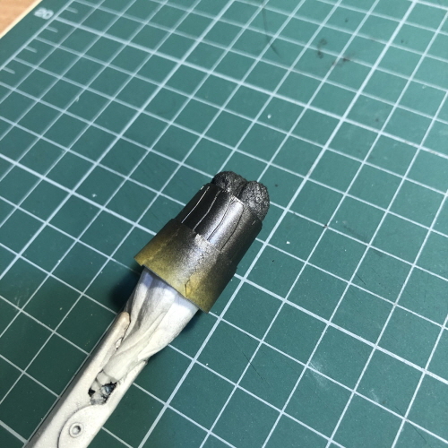 노즐 안쪽은 흰색이라서 이렇게 휴지로 마스킹을 했습니다.