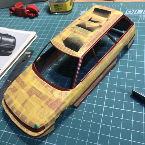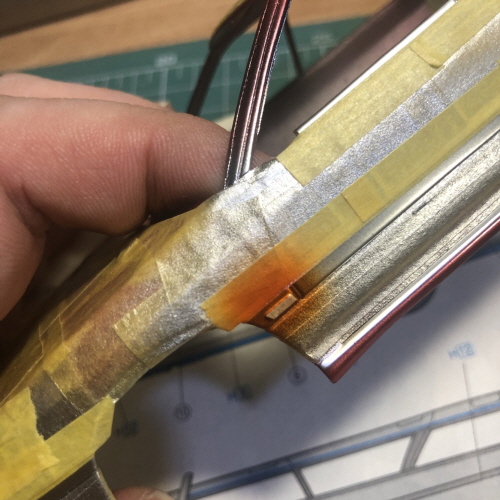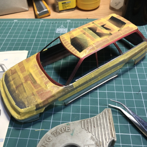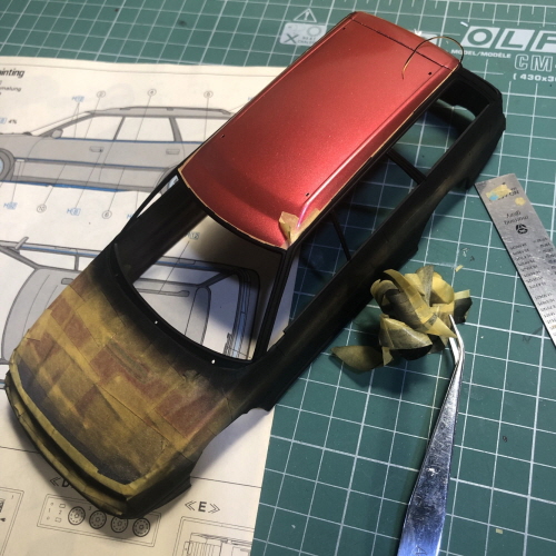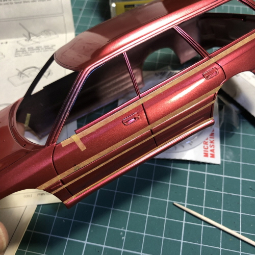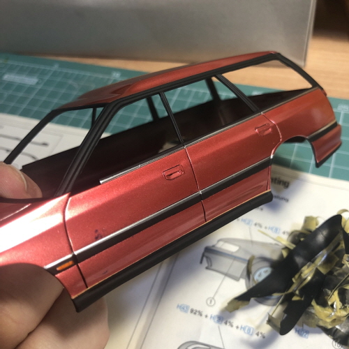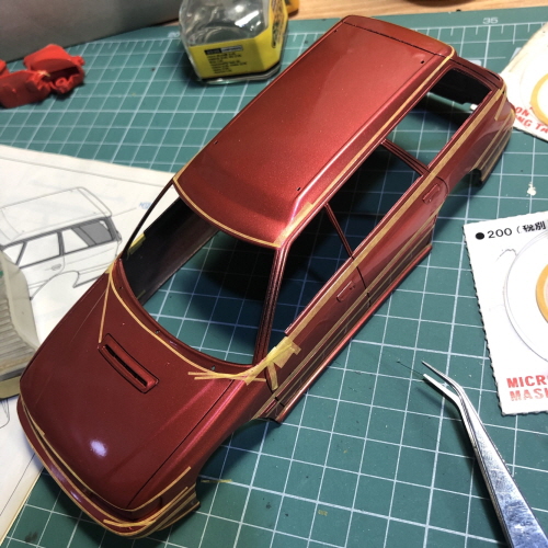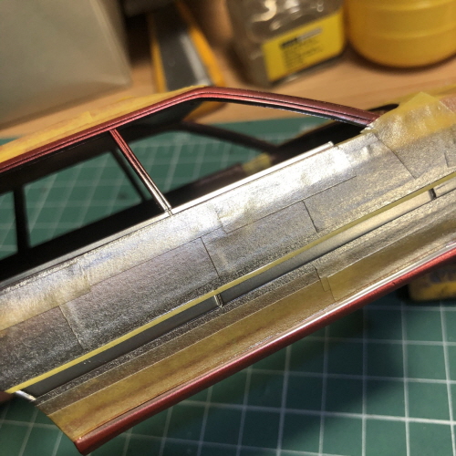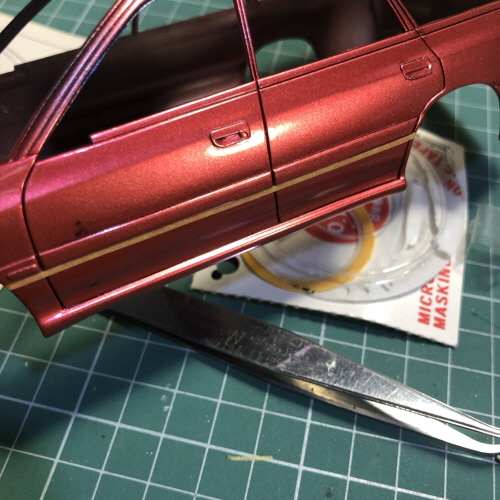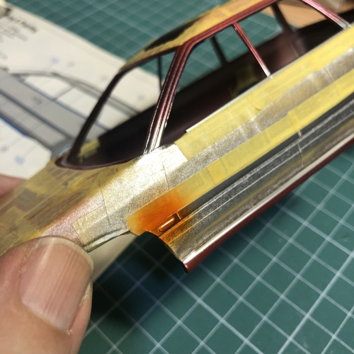 검은색이 칠해진 윗쪽에 크롬라인이 될 부분을 따라 마스킹테이프를 붙였습니다.