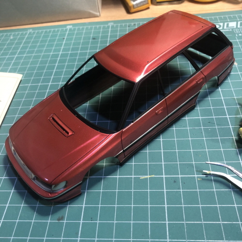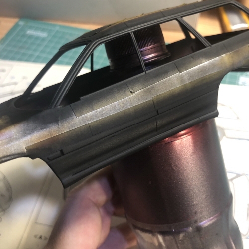 쿵스의 미러크롬 1액형을 크롬라인이 들어갈 부분에 에어브러싱했습니다.