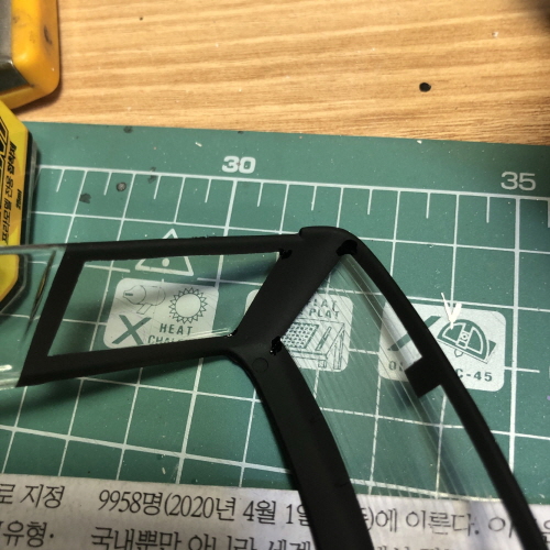 마스킹을 떼어내면 가장자리를 대충 마무리했던 부분이 드러납니다.
