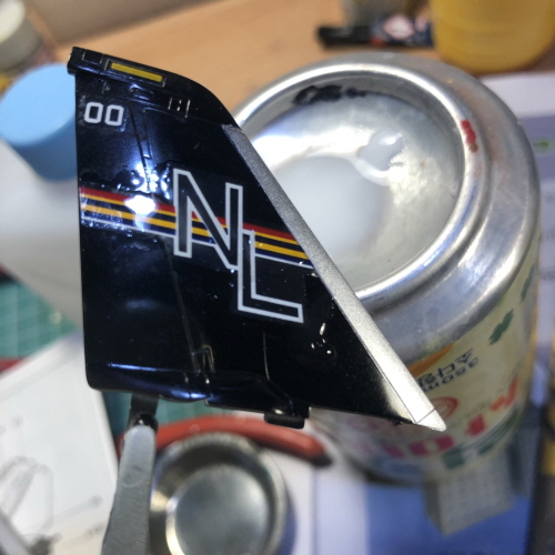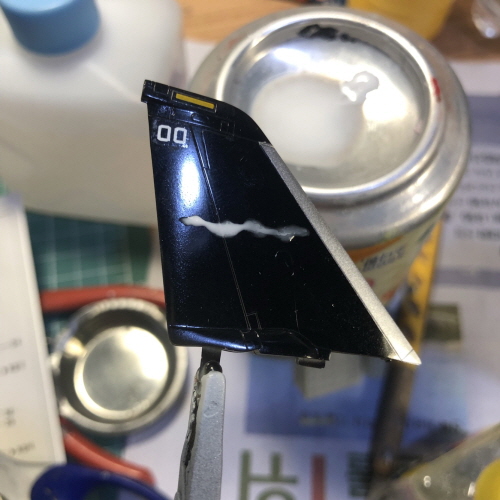 데칼위에 바로 반광 클리어를 올리면 데칼의 여백 부분이 허옇게 뜨는 현상이 생깁니다.