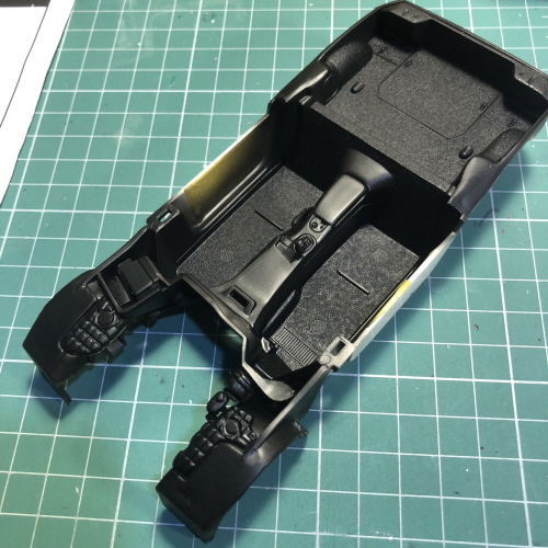 캐빈 부분을 욕조형태로 뽑아내되, 양쪽 옆면의 디테일도 살리려는 의도가 보이네요.