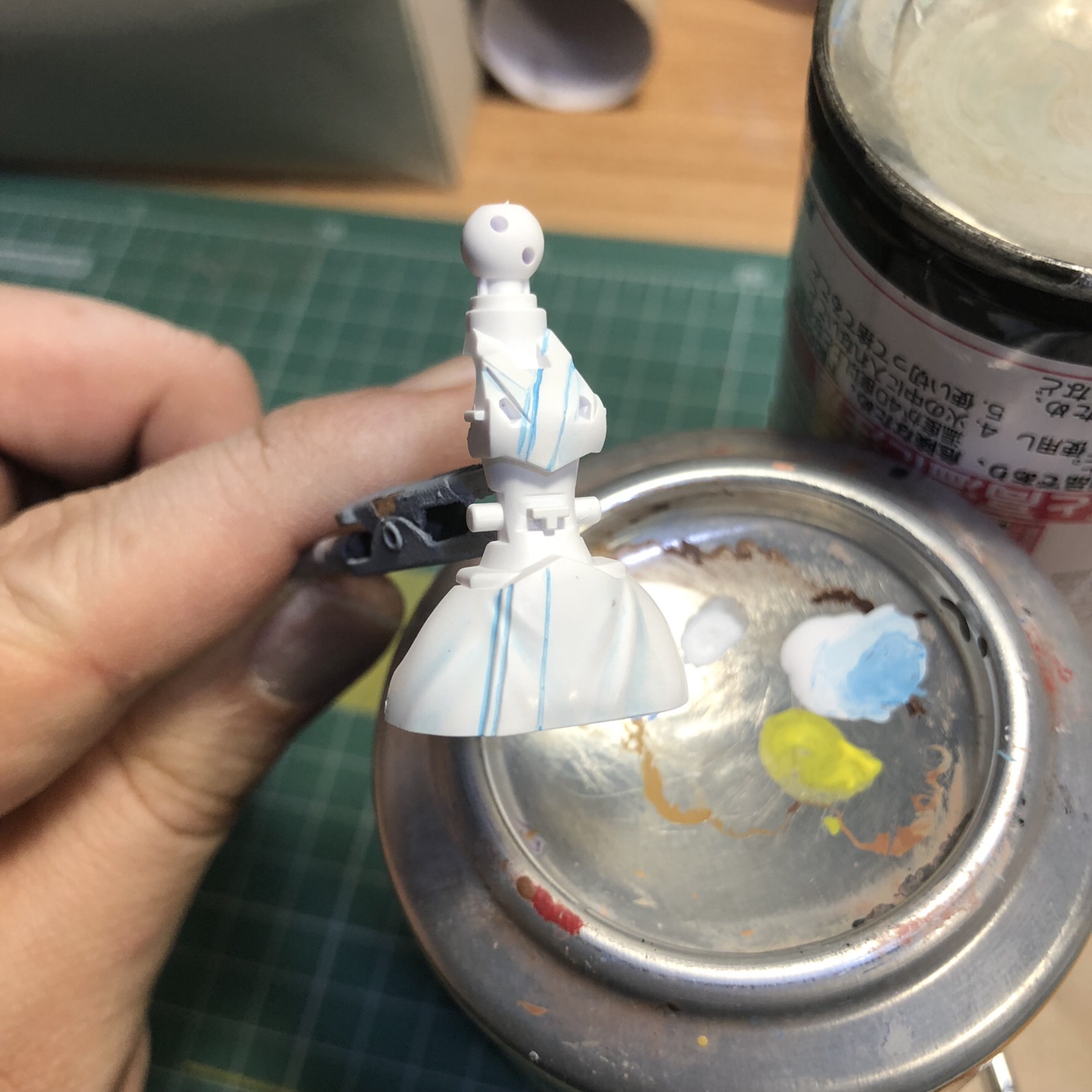 재봉선과 옷깃을 강조하기 위해서 에나멜로 하늘색을 조색해서 세필로 선을 그었습니다.