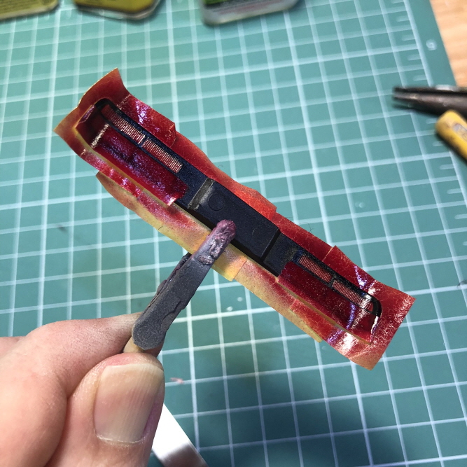 아래쪽만 마스킹을 하고 클리어 레드를 에어브러싱했습니다.