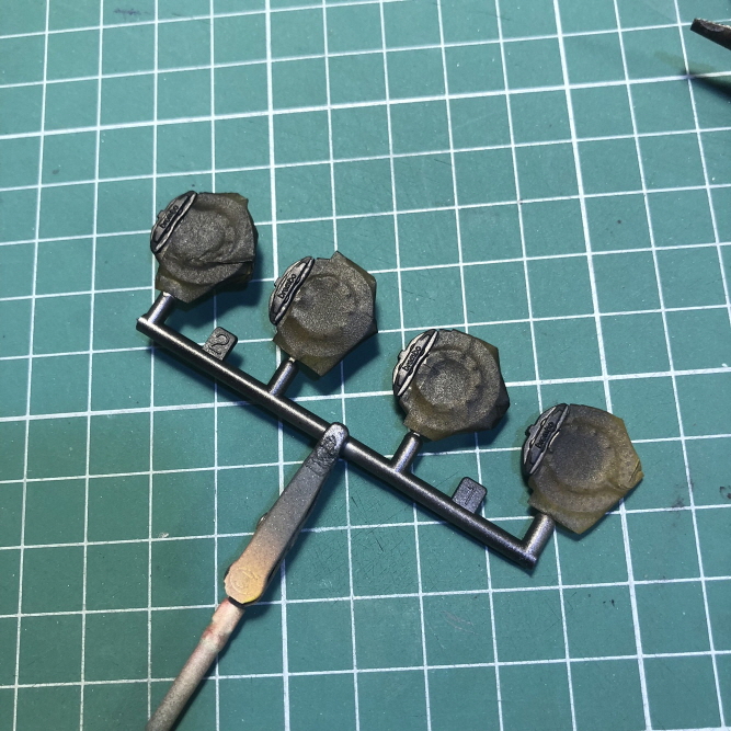 마스킹을 하고 건메탈로 에어브러싱 한 다음
