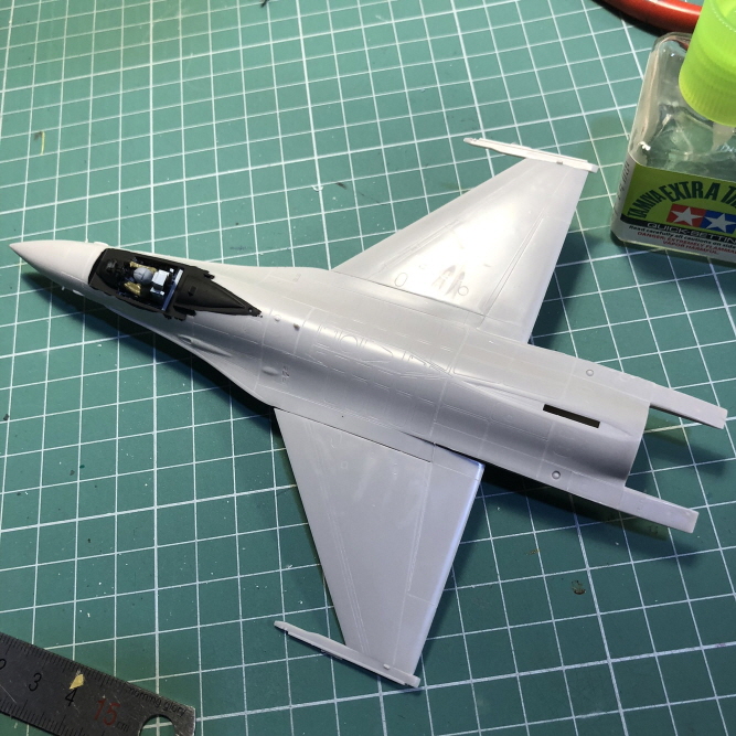 하세가와 F-16은 오메가형 캐노피를 재현하지 않아서 가운데 파팅라인을 없애는 과정은 없었습니다.