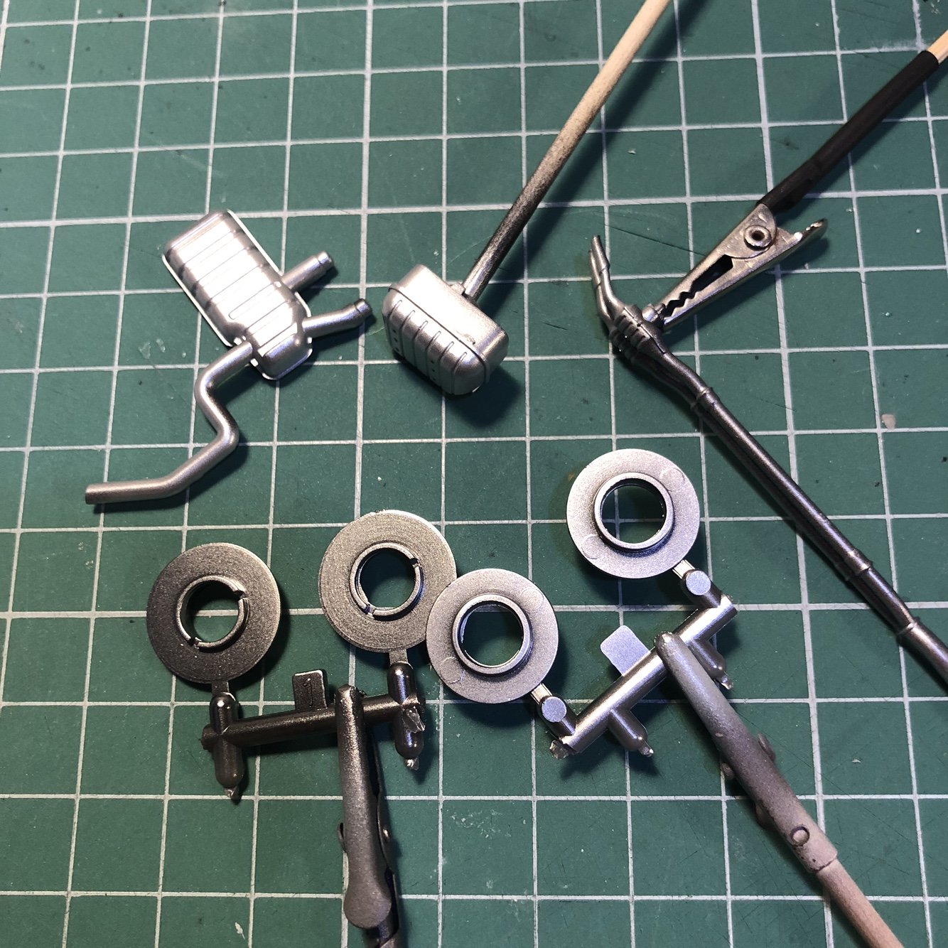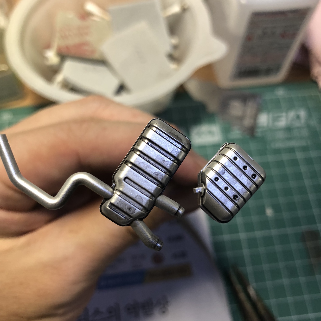 배기라인은 알루미늄으로, 브레이크 디스크는 은색으로 색칠했습니다.
