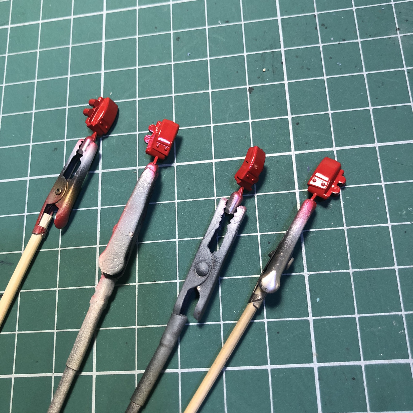 은색계열로 색칠할 부품들을 따로 모아서 유광검정으로 밑칠을 했습니다.