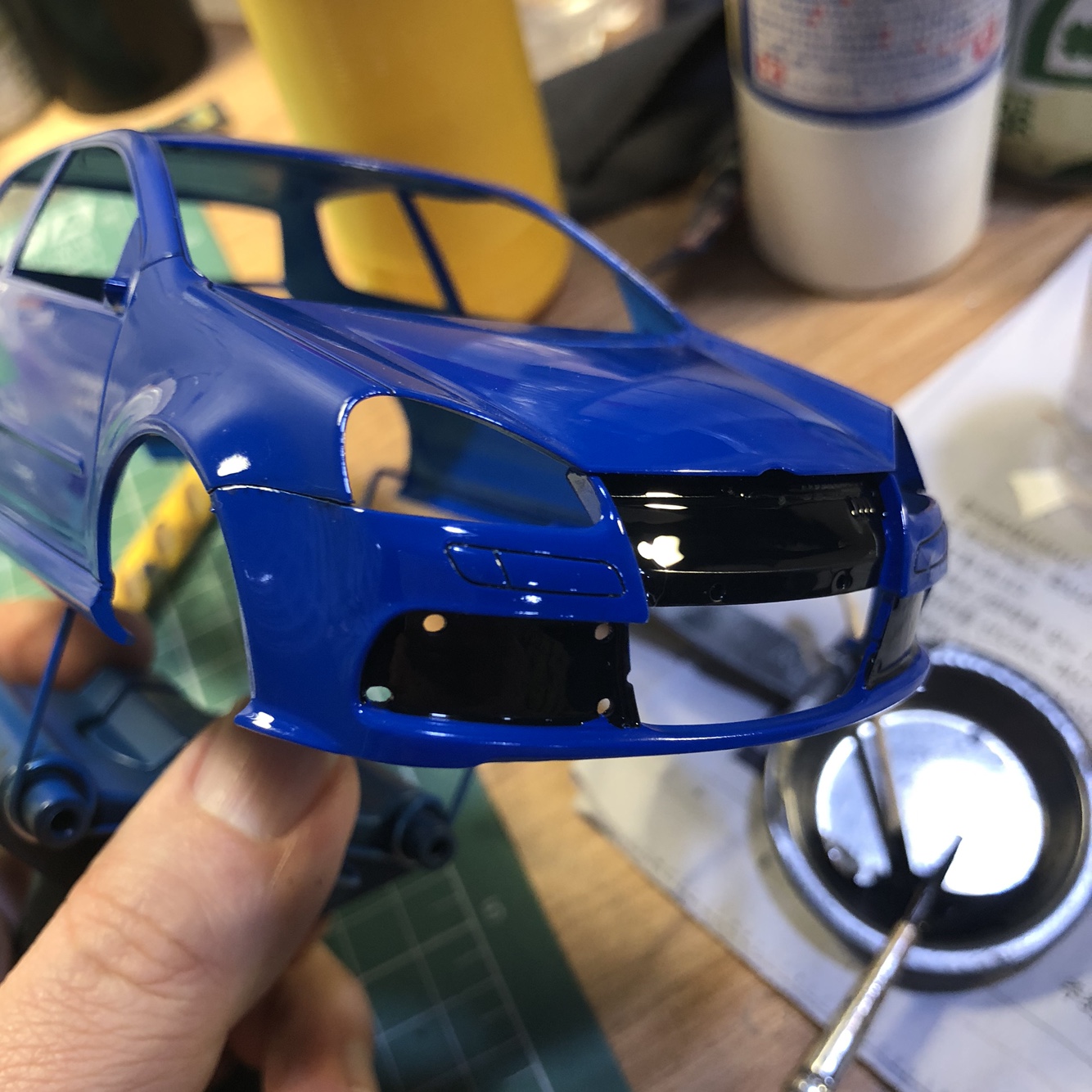 그릴을 붙이기 전에 안쪽을 타미야 에나멜 XF-1 무광검정으로 색칠했습니다.