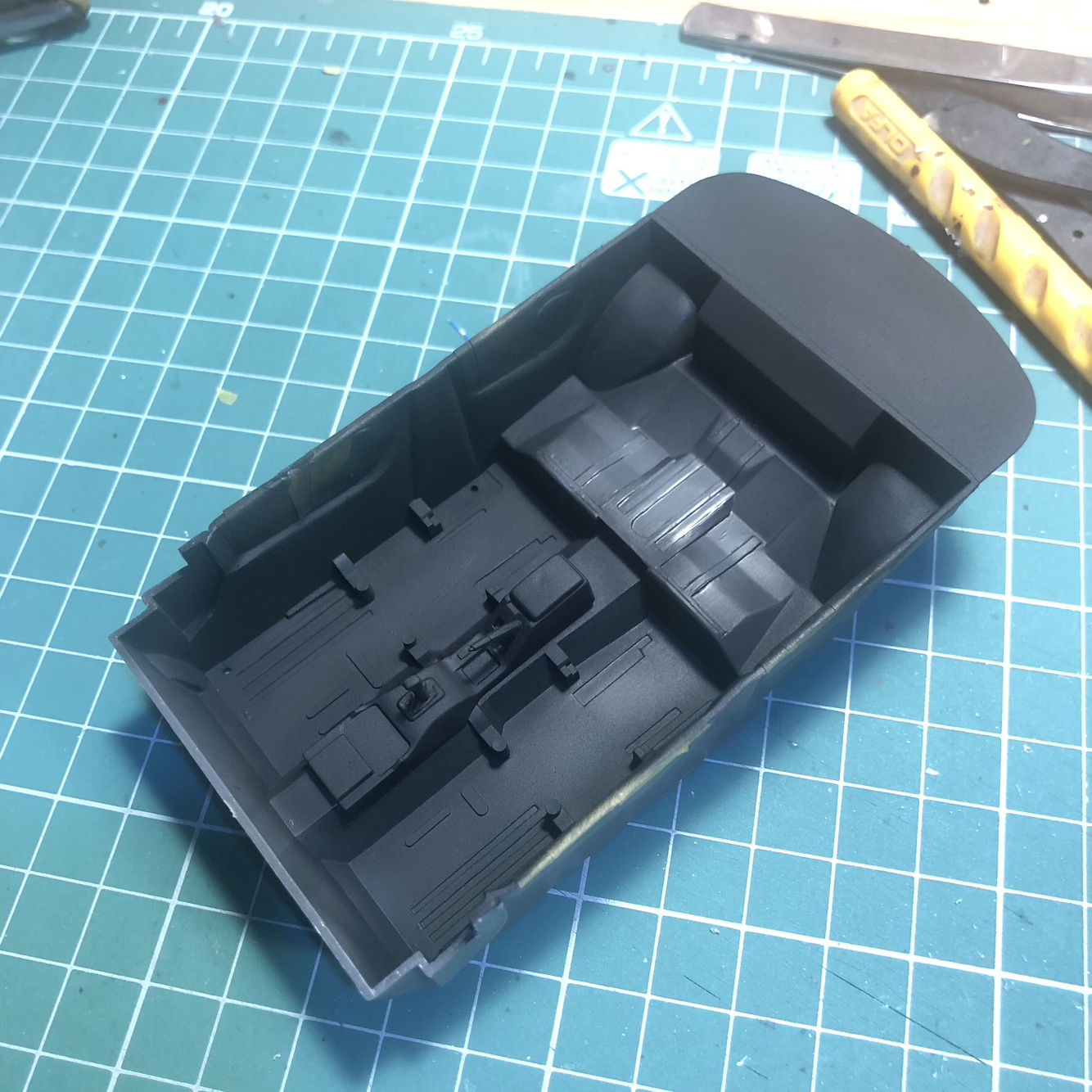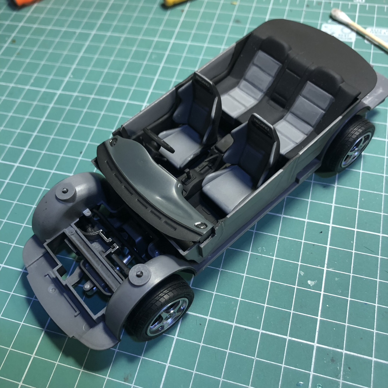 뒷좌석은 마스킹후에 GSI락카 33번 무광검정으로 색칠했고, 시트는 뒤쪽을 프리핸드로 색칠했습니다.