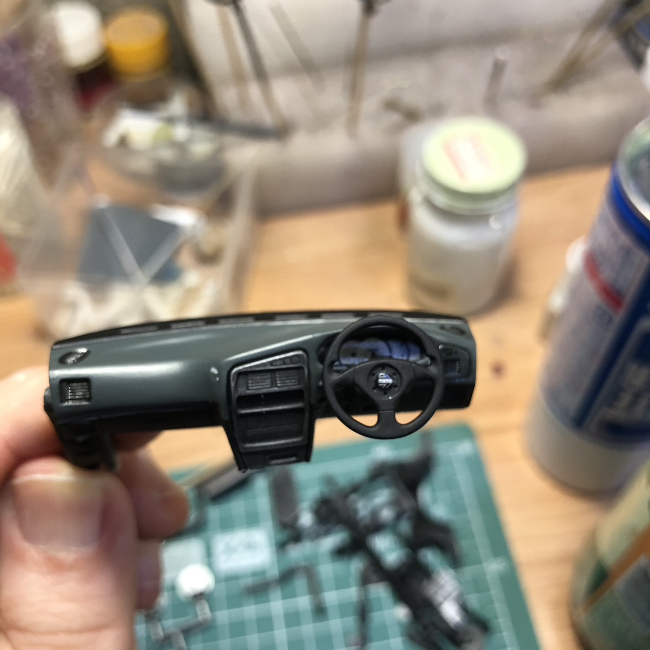센터페시아도 투톤이라서 GSI 락카 36번 RLM74그레이그린을 먼저 색칠하고, 마스킹 후 13번을 색칠했습니다.