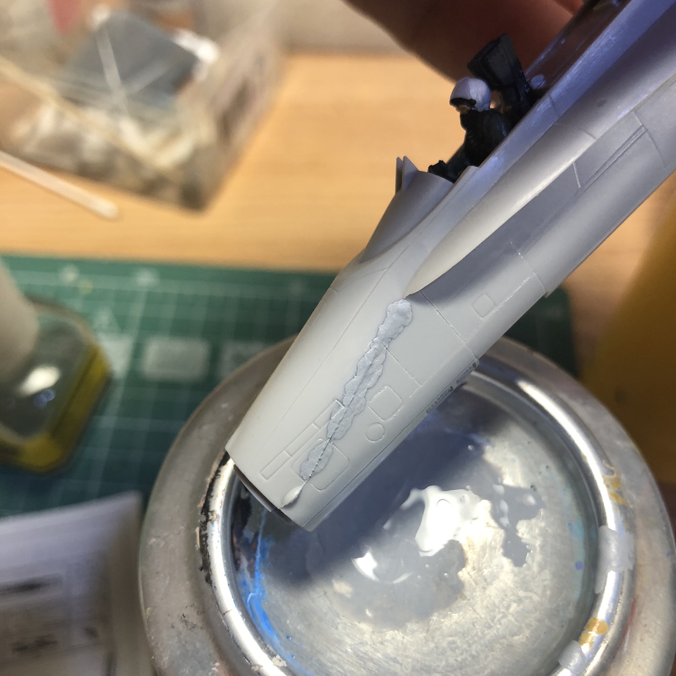 캐노피 부품을 붙이고 패널라인이 잘 파였는지 확인할 겸 색칠해보았습니다.