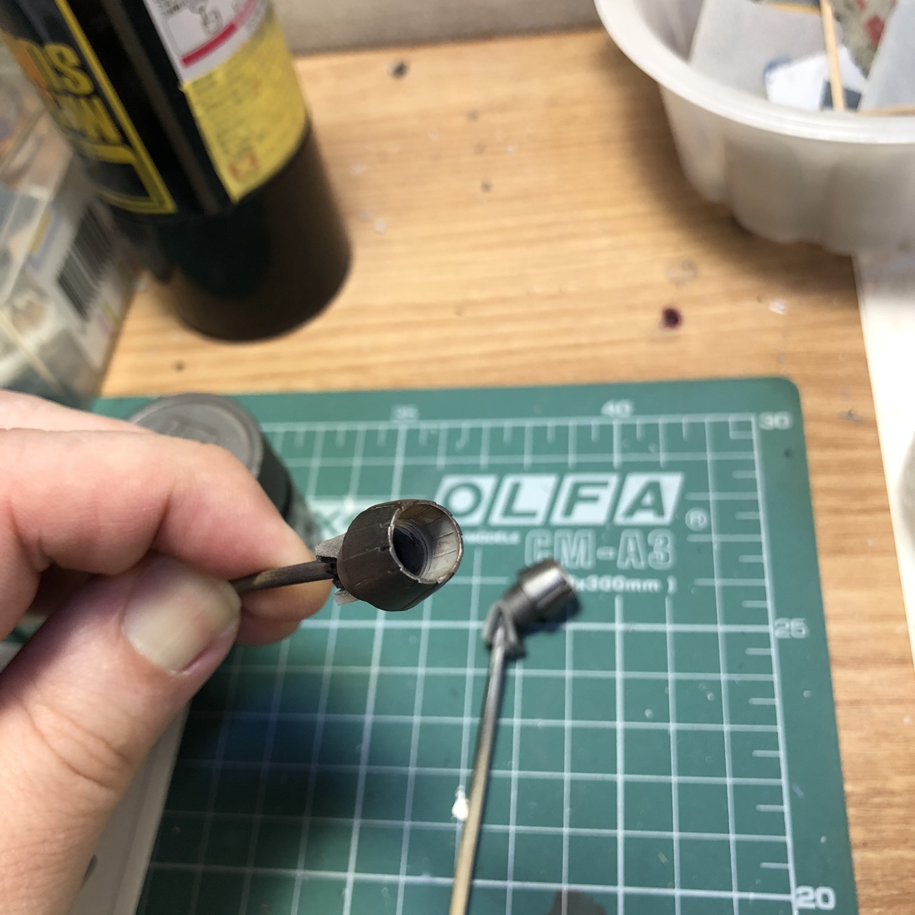 건메탈로 색칠을 하고 안쪽을 동체와 같은 방법으로 웨더링 했습니다.