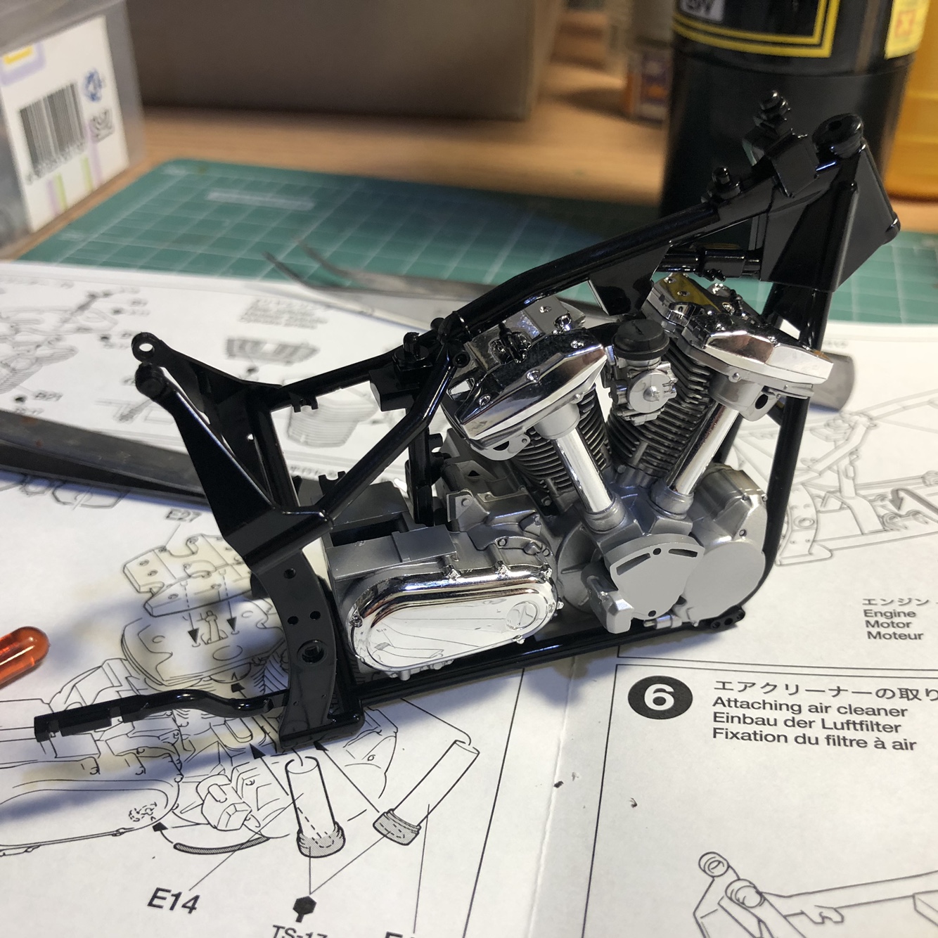 프레임에 엔진을 올리니 한 1/3은 완성한 것 같은 기분이 듭니다.