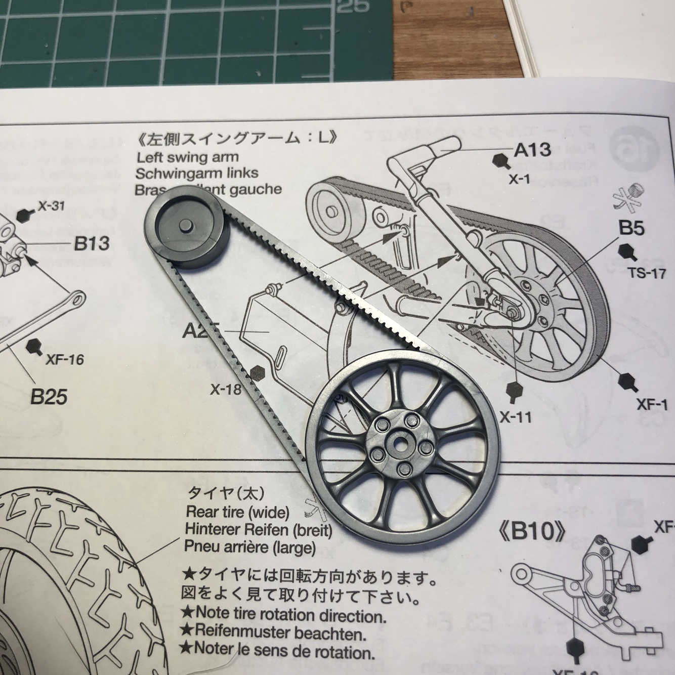IPP의 알루미늄 실버로 에어브러싱하고 고무벨트 부분은 타미야 에나멜로 붓질했습니다.