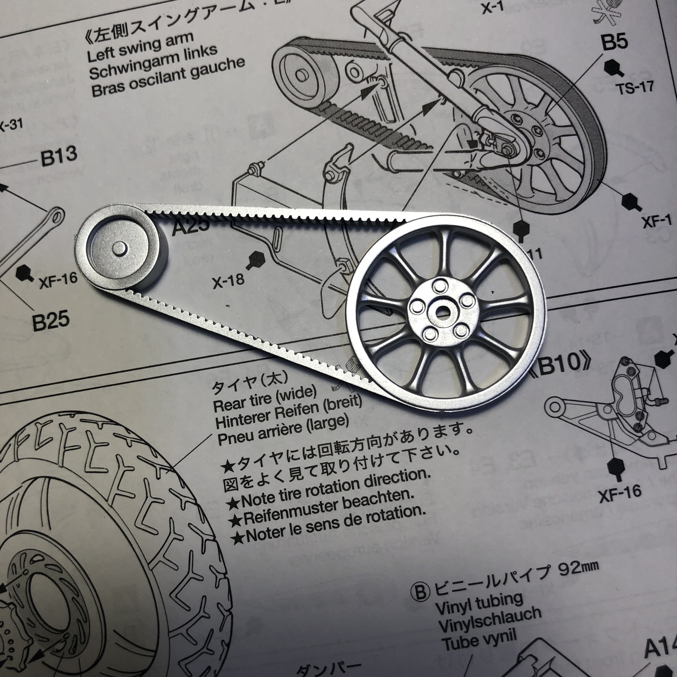신기하게도 이 오토바이는 체인이 아닌 고무벨트로 구동하는군요.