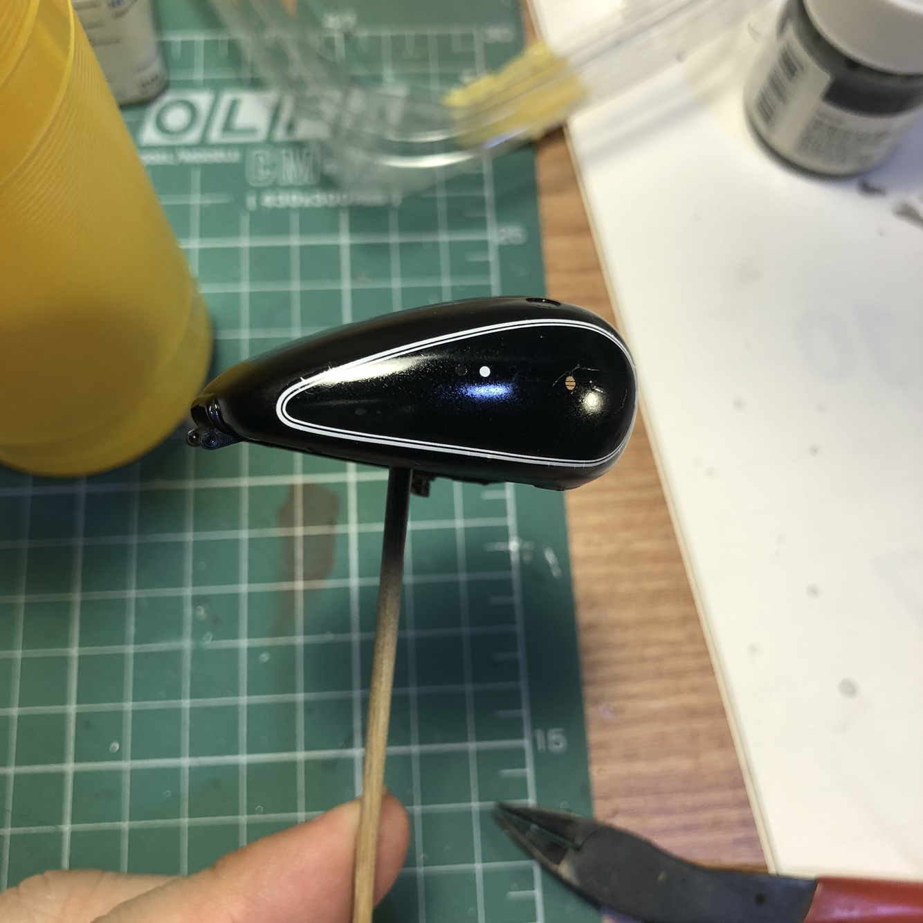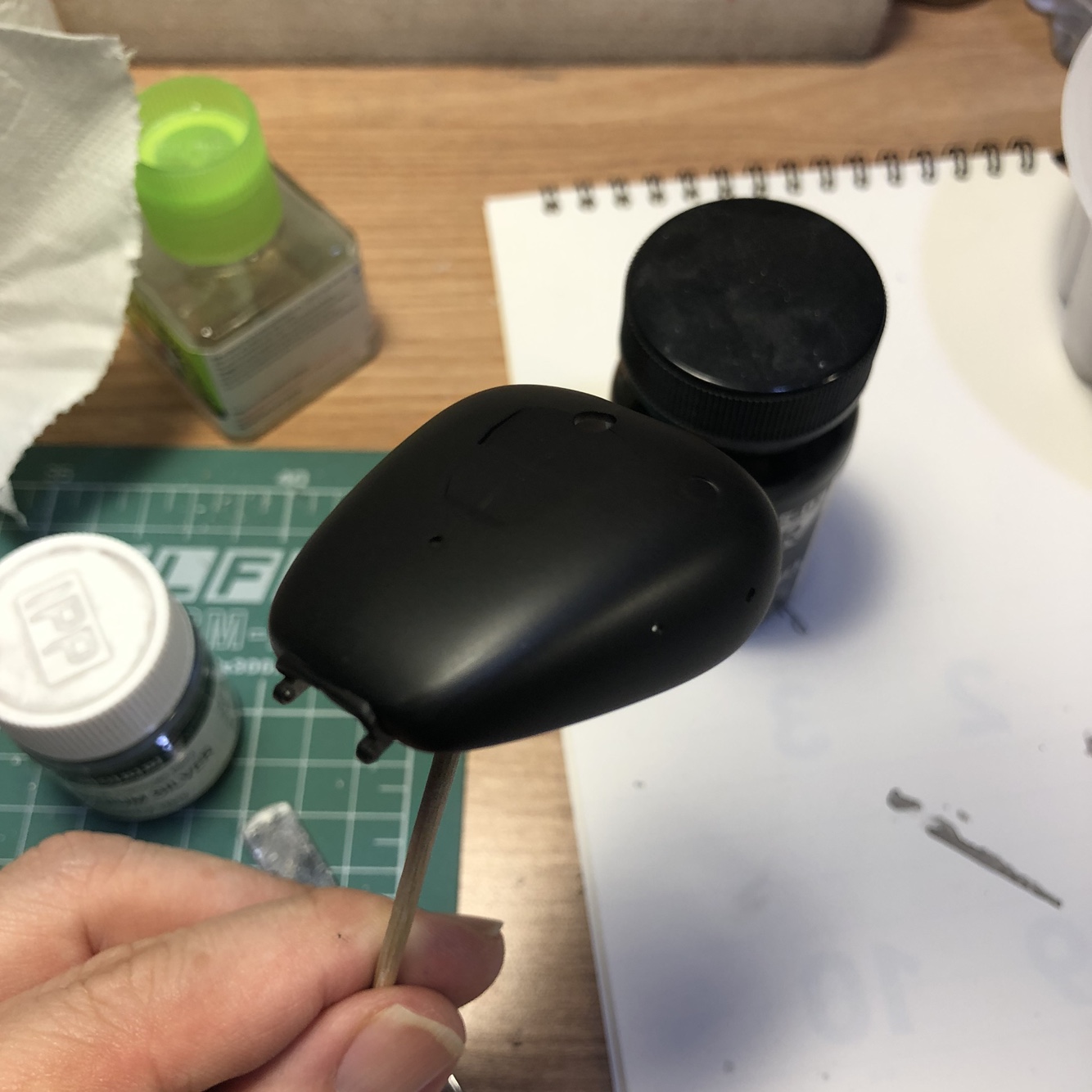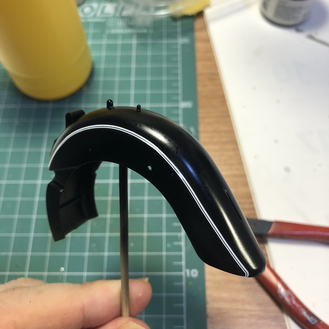 표면을 고운 사포질로 한번 더 정리하고 GSI락카 2번 유광검정으로 색칠했습니다.