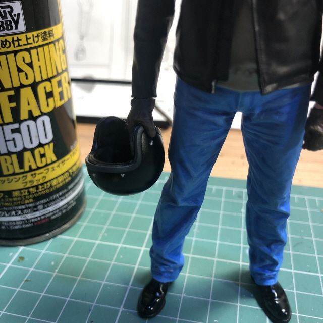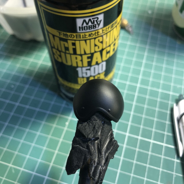 서페이서로 밑칠을 하고 GSI락카 33번 무광검정으로 에어브러싱 했습니다.