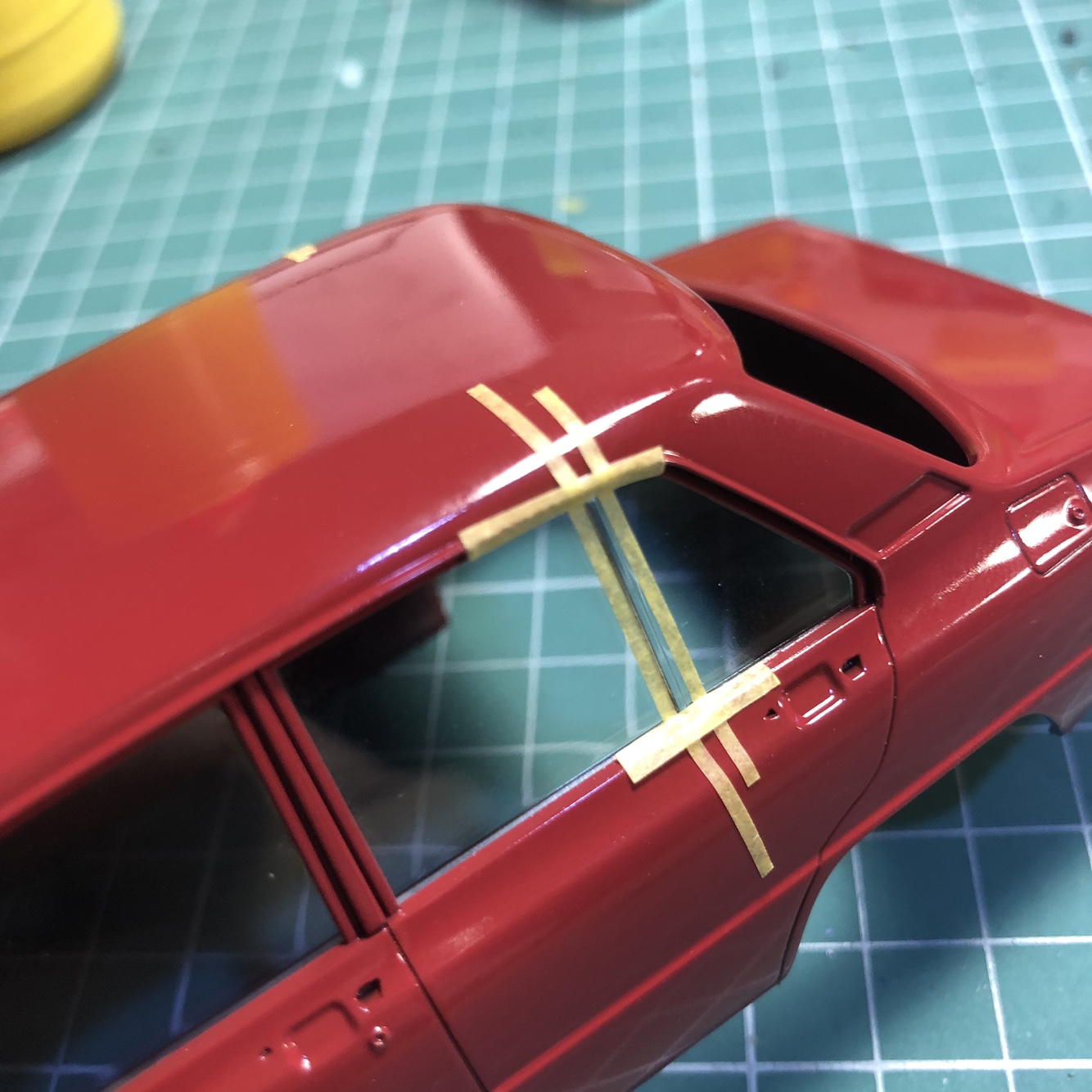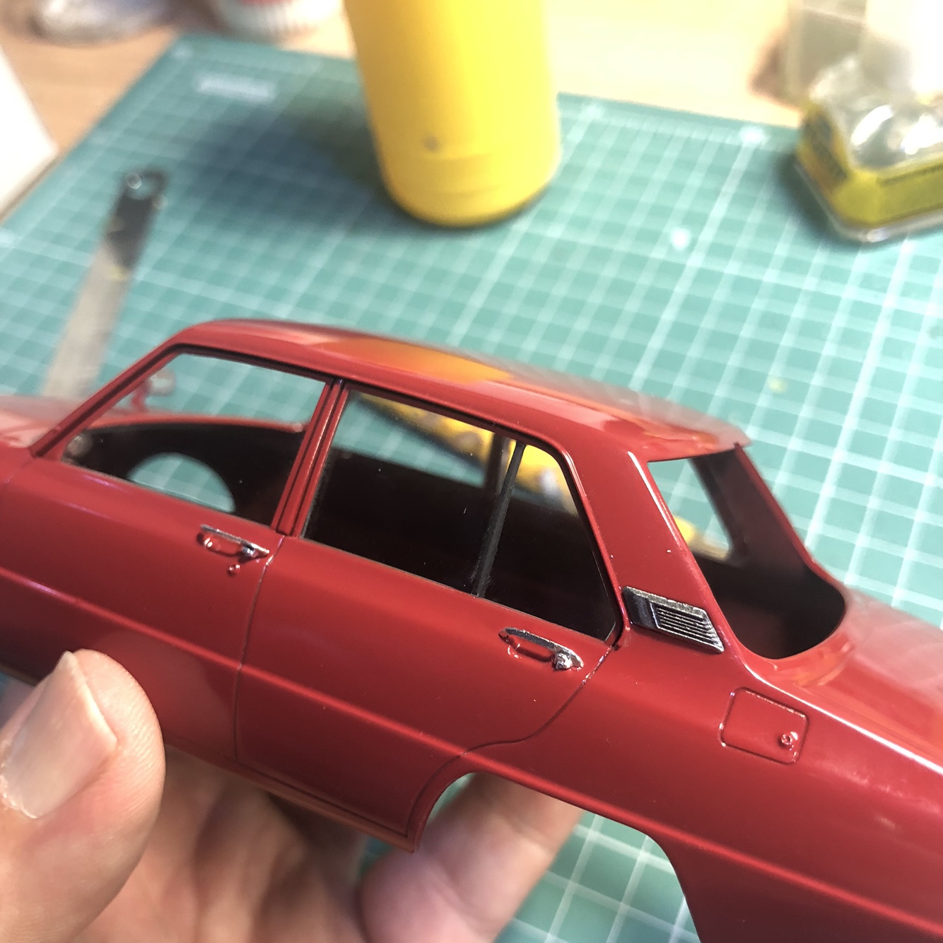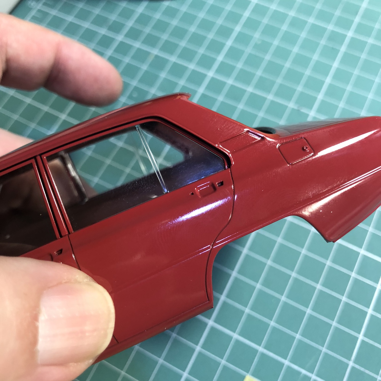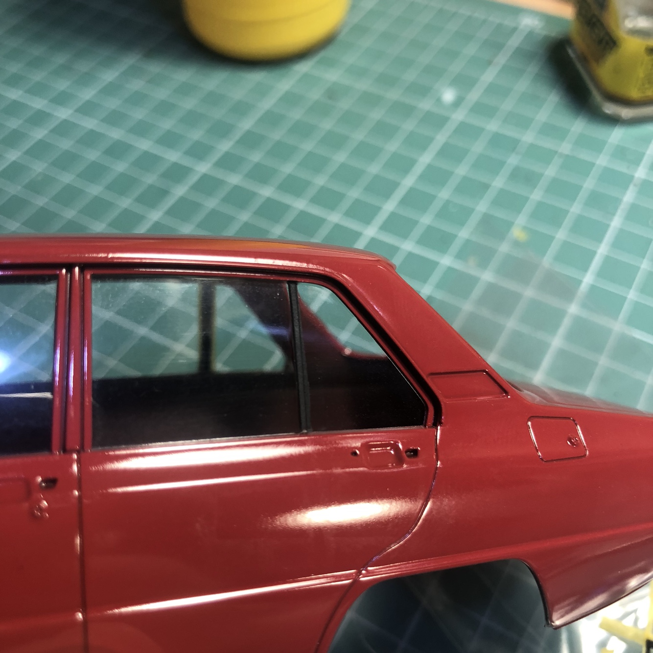 창틀이 차체가 아닌 투명부품에 몰드되어 있는데 이걸 놓쳤습니다.