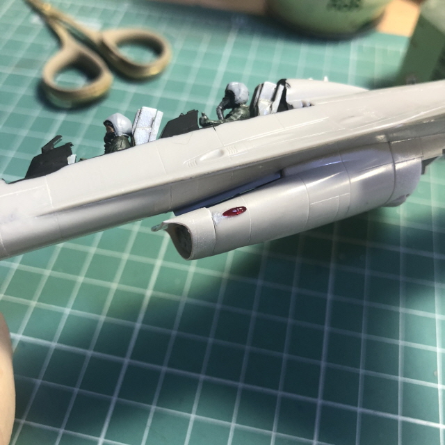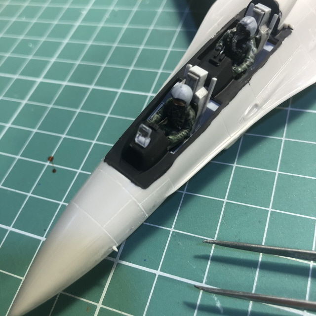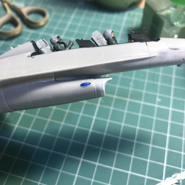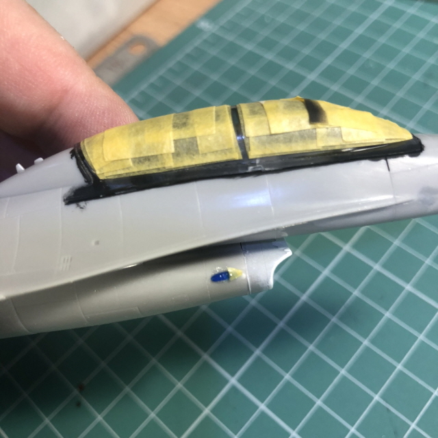 조종석 주변을 타미야 에나멜 XF-1 무광검정으로 색칠하고 HUD 투명부품을 목공용접착제(오공본드)로 붙였습니다.
