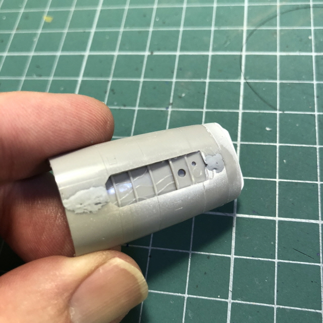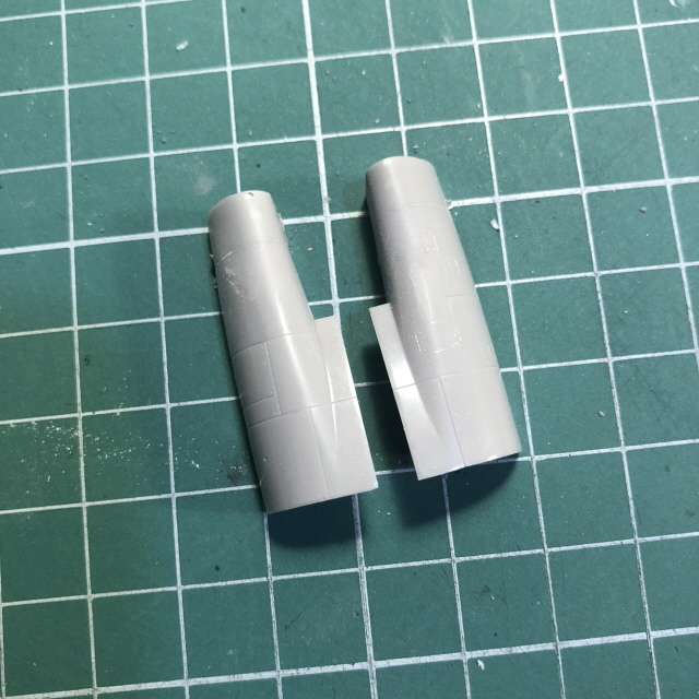 B14,15의 양 옆에 항법등 부분을 칼로 잘라내고 사포로 다듬었습니다.